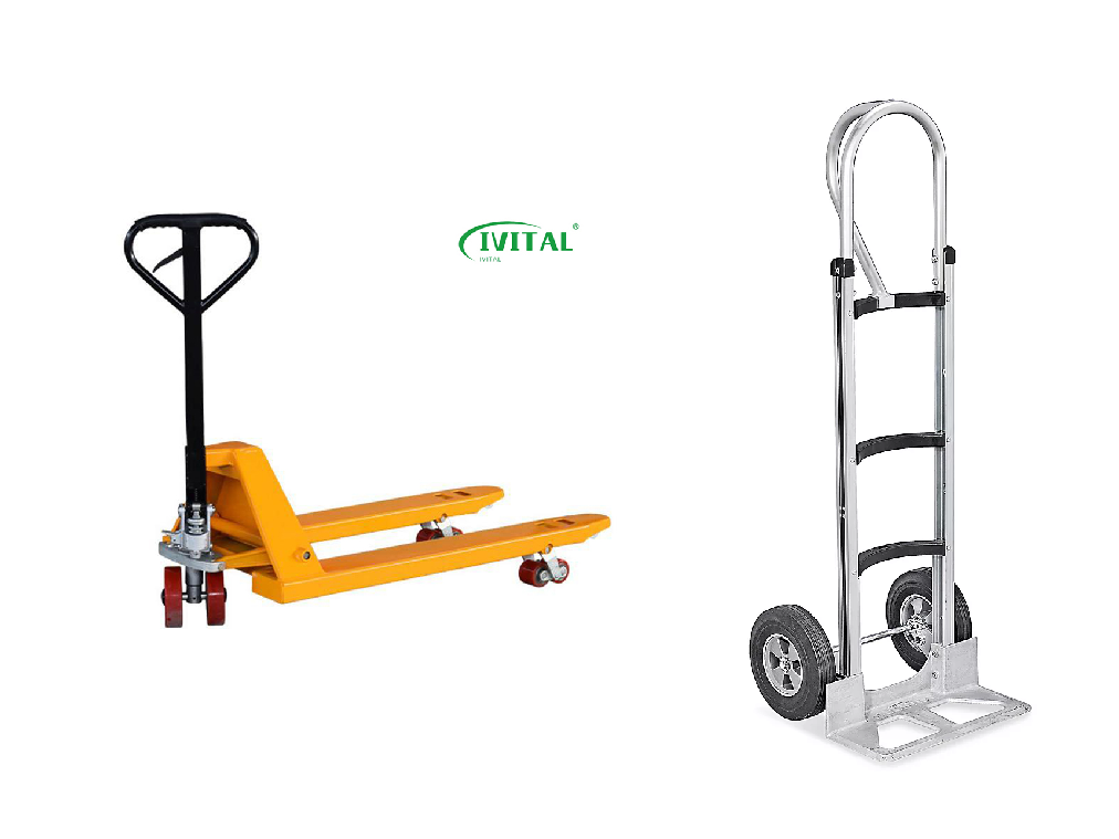 Hand trucks move boxes, pallet trucks move full pallet loads. They serve very different purposes.